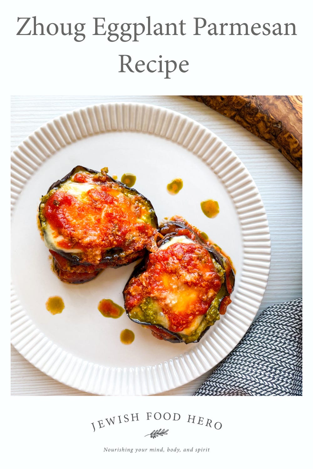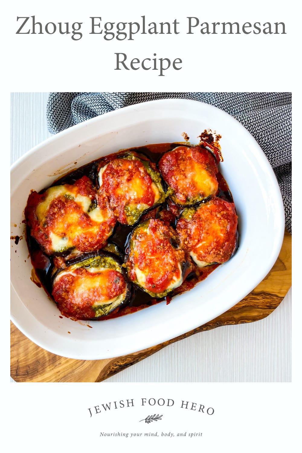 Zhoug is a spicy herb sauce that originated in Yemen, made from fresh cilantro, garlic, and green chili peppers, often enhanced with spices like cumin and cardamom. Known for its bold flavors and vibrant green color, zhoug adds a delightful kick to this eggplant parmesan recipe, which layers roasted eggplant with a zhoug-infused sauce, marinara, and gooey cheese.